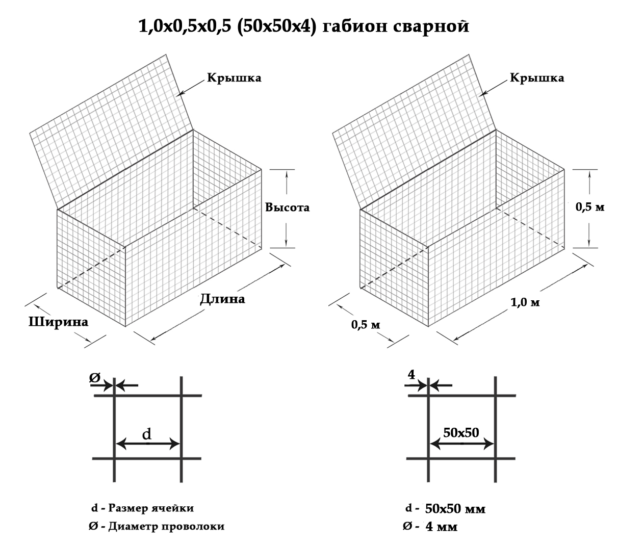 На схеме предствален сварной габион стандартных размеров.