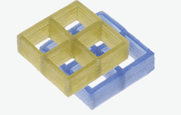 Стеклопластиковый настил представляет собой монолитную ячеистую решетку. Изготовляется из изофталевой смолы в «пищевой модификации» армированной стеклянным волокном E-2400 TEX. Соотношение материалов 70% на 30%.